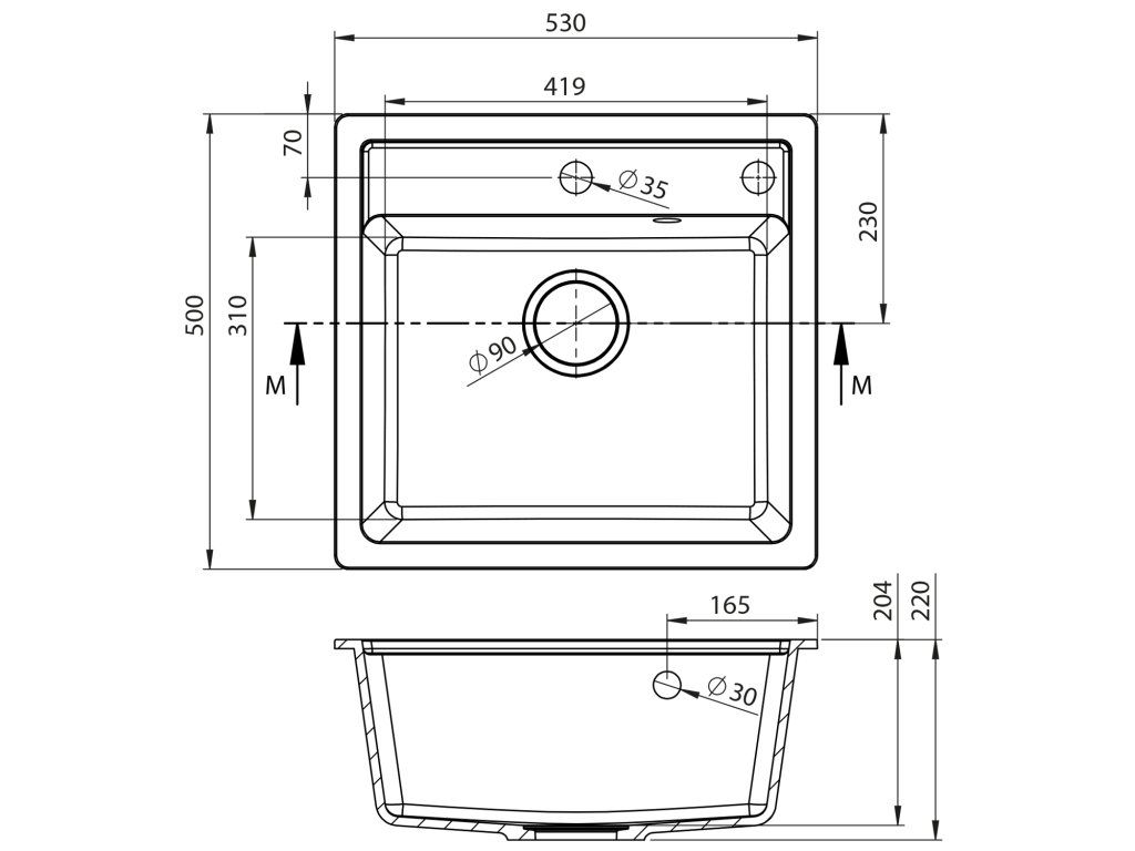 Sapho Granitový vestavný dřez mono, 53x50cm, bílá GR1031
