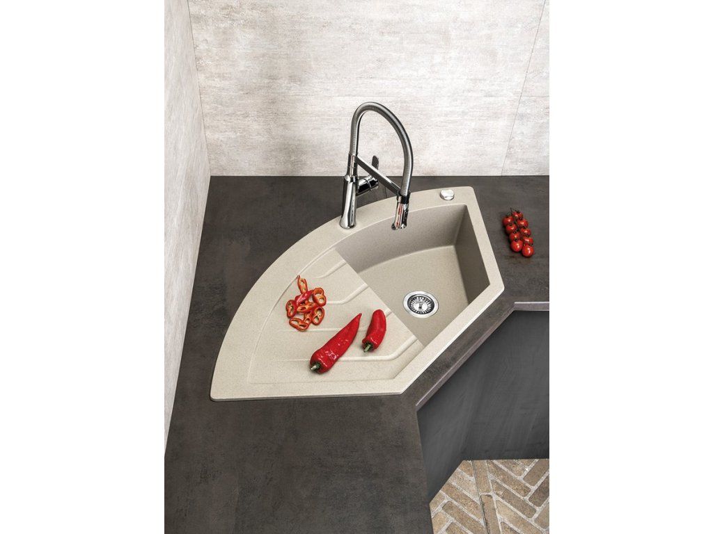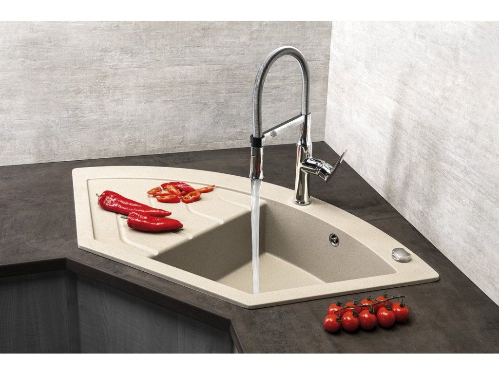 Sapho Granitový vestavný dřez rohový s odkapem, 114x57,5cm, béžová GR1932