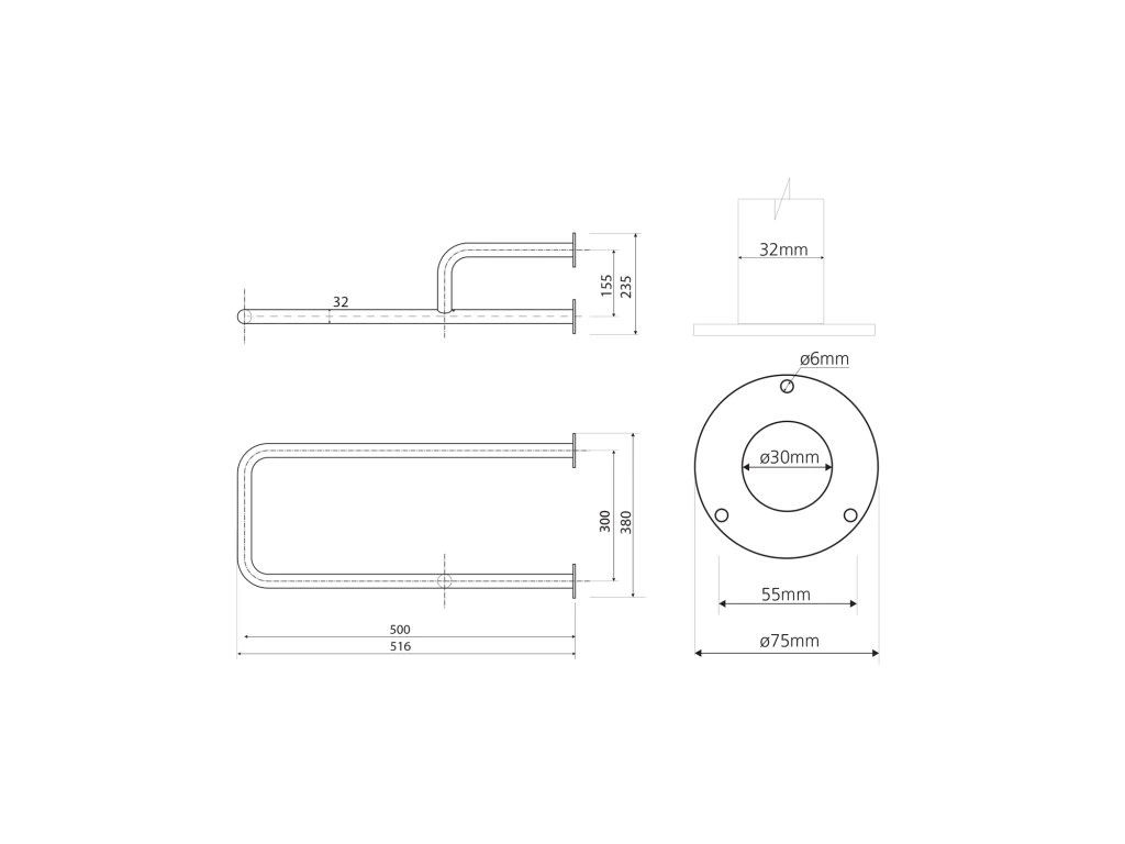 Sapho HANDICAP opěrné madlo PRAVÉ 500mm, nerez lesk XH534