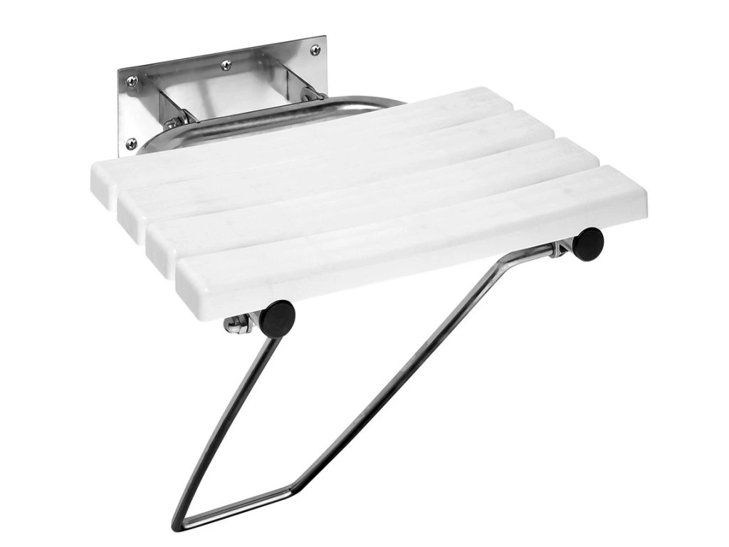 Sapho HANDICAP sklopné sedátko do sprchového koutu s opěrnou nohou, 44x45cm, bílá XH001