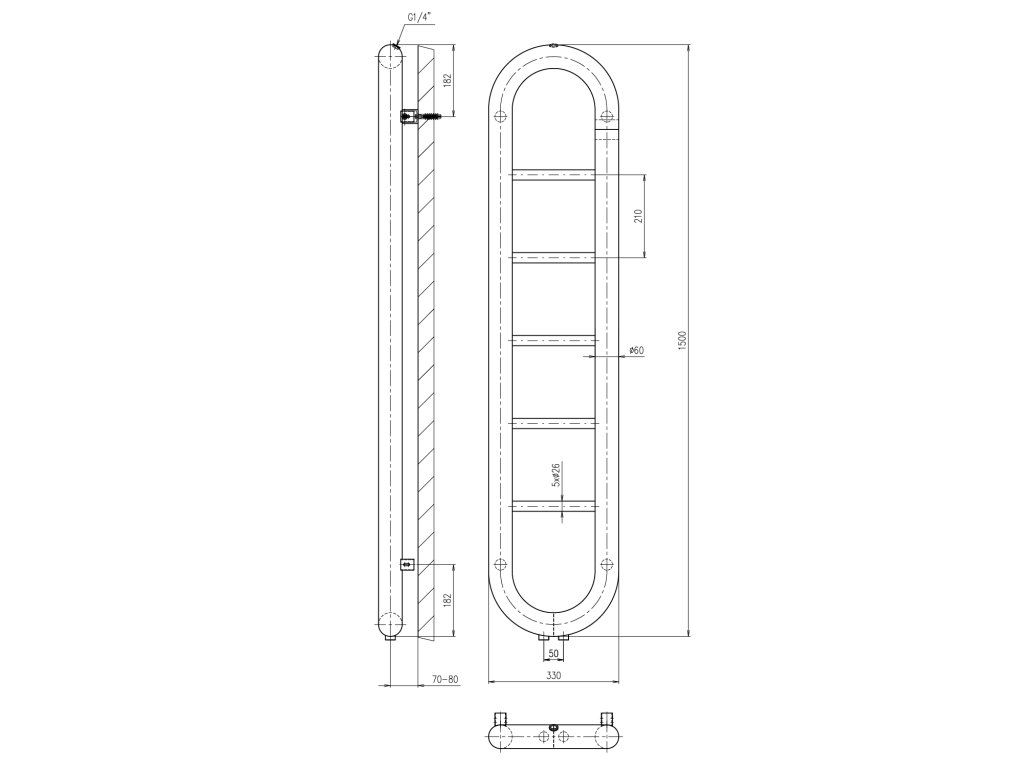 Topení s připojovací roztečí 50 mm