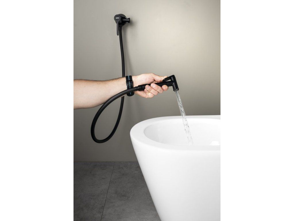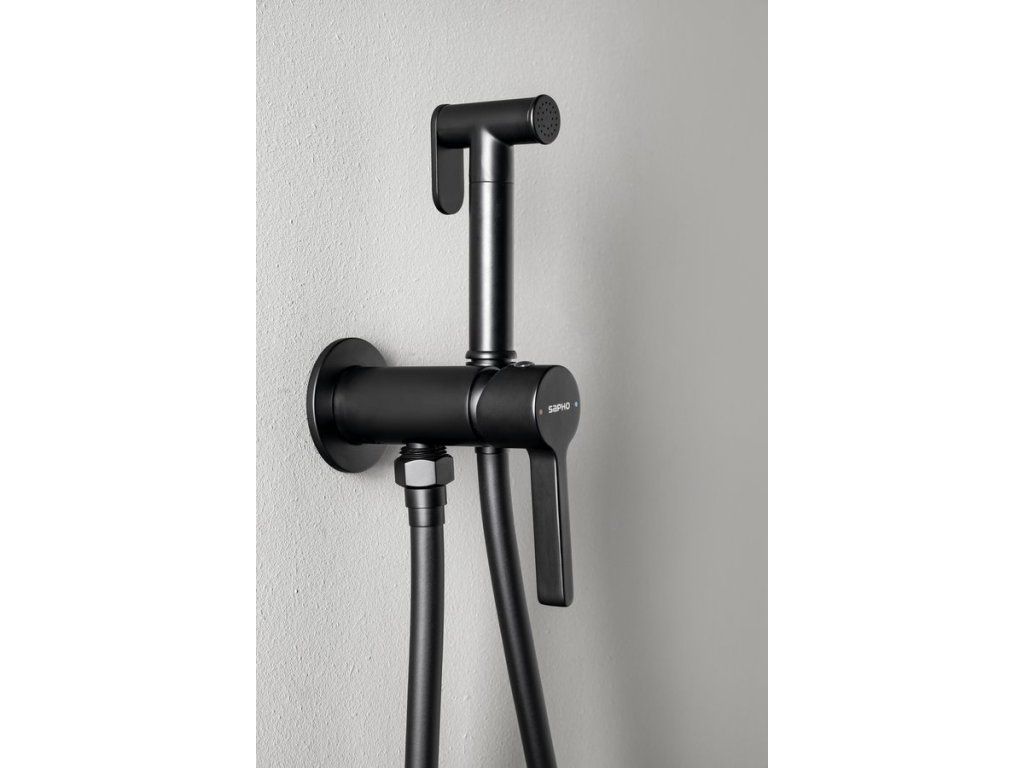 Sapho ICONIC podomítková bidetová baterie se Stop sprškou, kulatá, černá mat AF040B