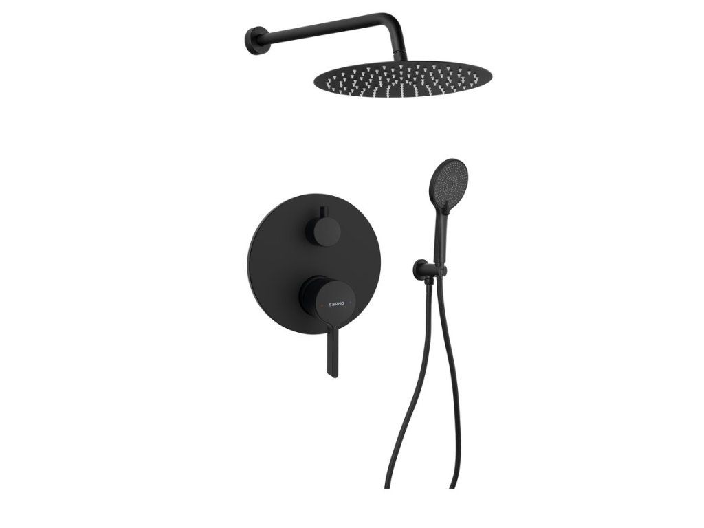 Sapho ICONIC podomítkový sprchový set s pákovou baterií, 2 výstupy, vyústění, černá mat AF042B-01