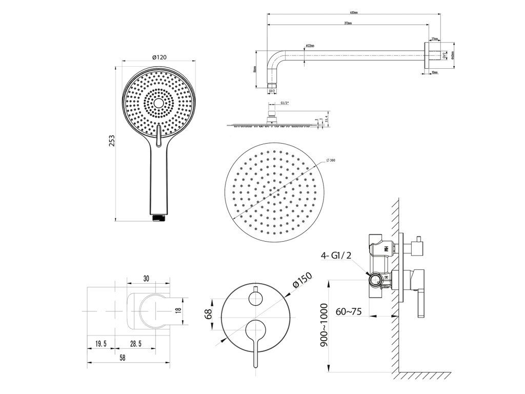 | Funkce sprchy: | Déšť;Masáž;Déšť/Masáž |