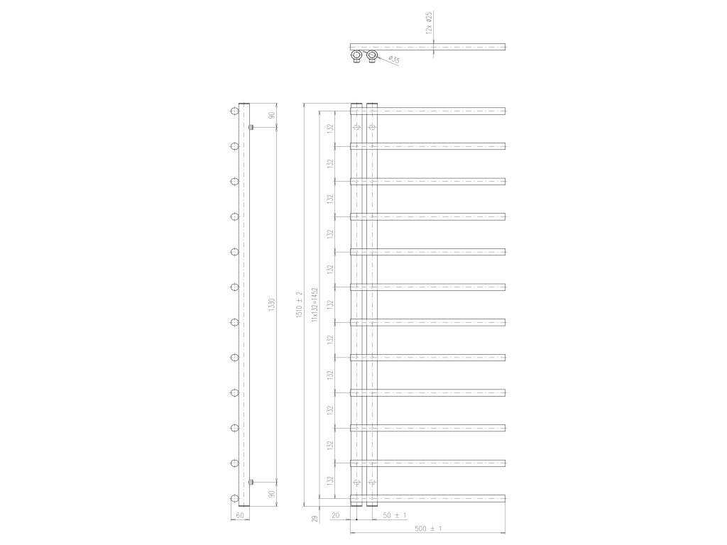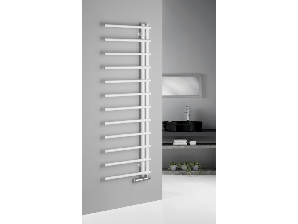 Praktická otopná tělesa JUSTINA vyrobená z ocelových trubek umožní pohodlné zavěšení ručníků z boku na horizontální tyče.