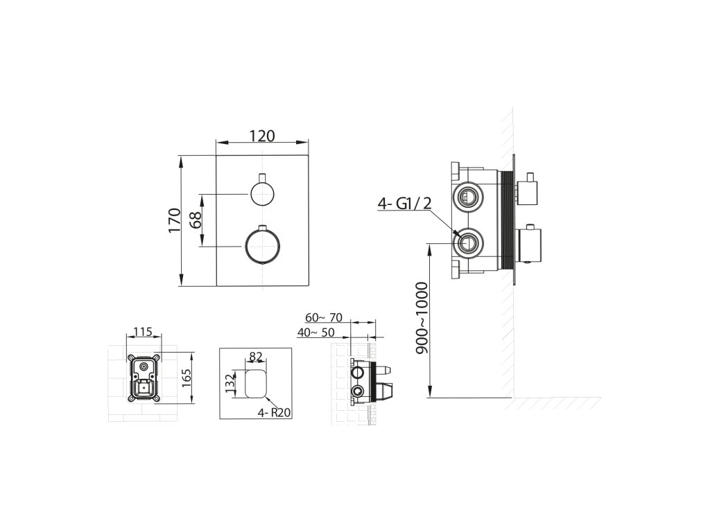 Sapho KIMURA podomítková sprchová termostatická baterie, box, 2 výstupy, chrom KU682
