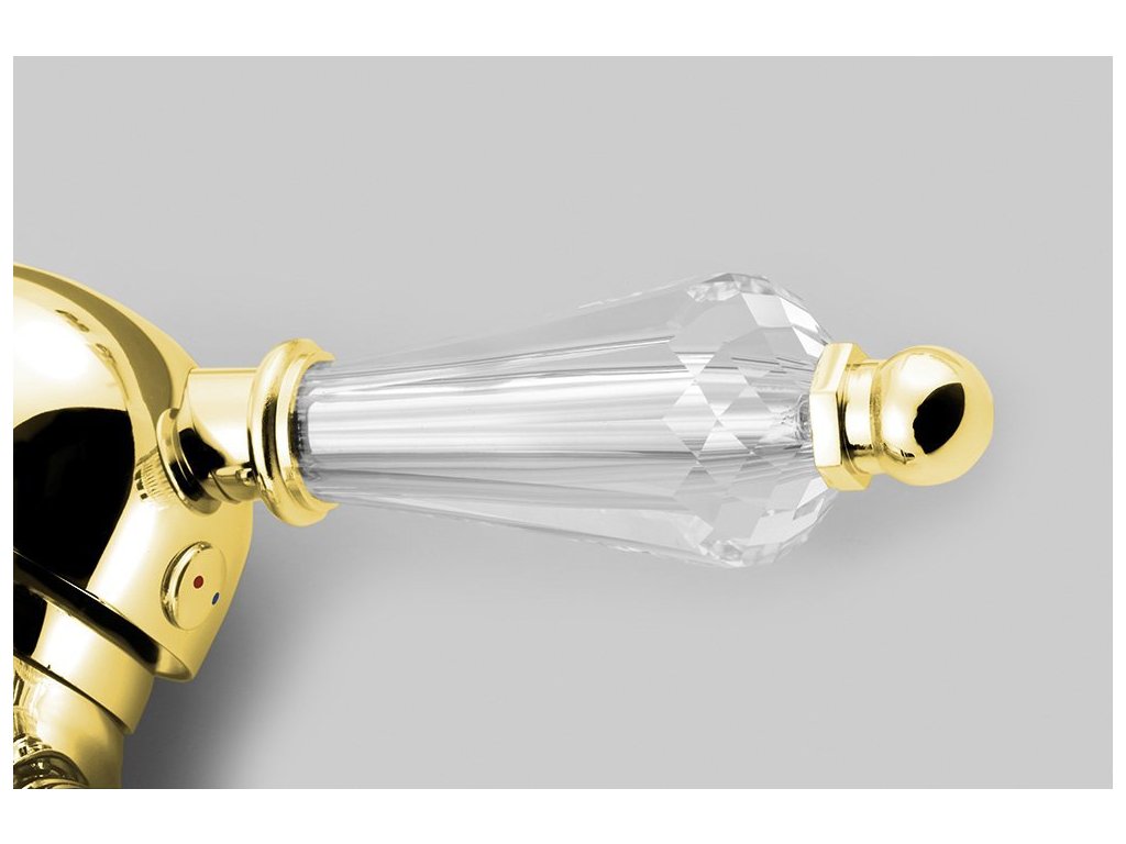 Vodovodní baterie KIRKÉ CRYSTAL se svým designem řadí mezi baterie, které můžete použít jak v koupelně moderní, tak i v koupelně zařízené v retro stylu. Oproti kohoutkovým retro bateriím poskytují výhodu v pákovém ovládání. Proto je mnohem snadnější nastavit teplotu i průtok vody. Baterie mají také mnoho „tváří“ ve smyslu barevného provedení. V naší nabídce je naleznete v chromu, bronzu a zlatě. Baterie se pyšní páčkou s krystalem Swarovski.