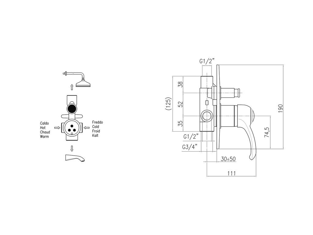 | Přepínač na sprchu: | Tlakový |