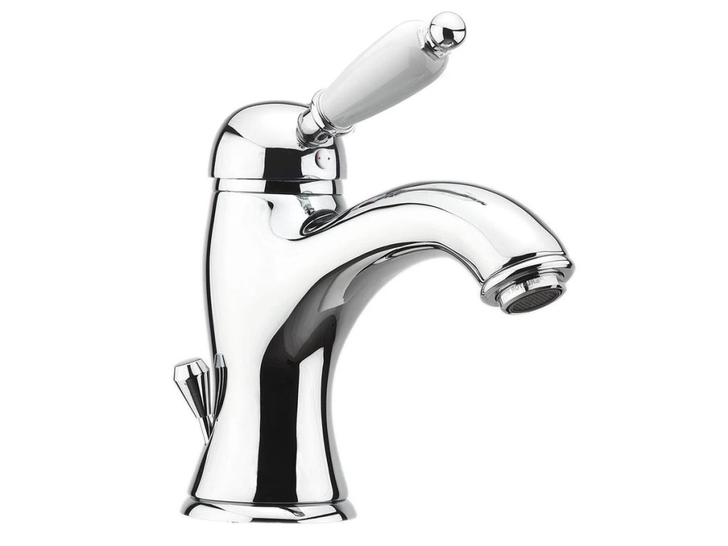 Sapho KIRKÉ WHITE stojánková umyvadlová baterie s výpustí, bílá páčka, chrom KI02BC