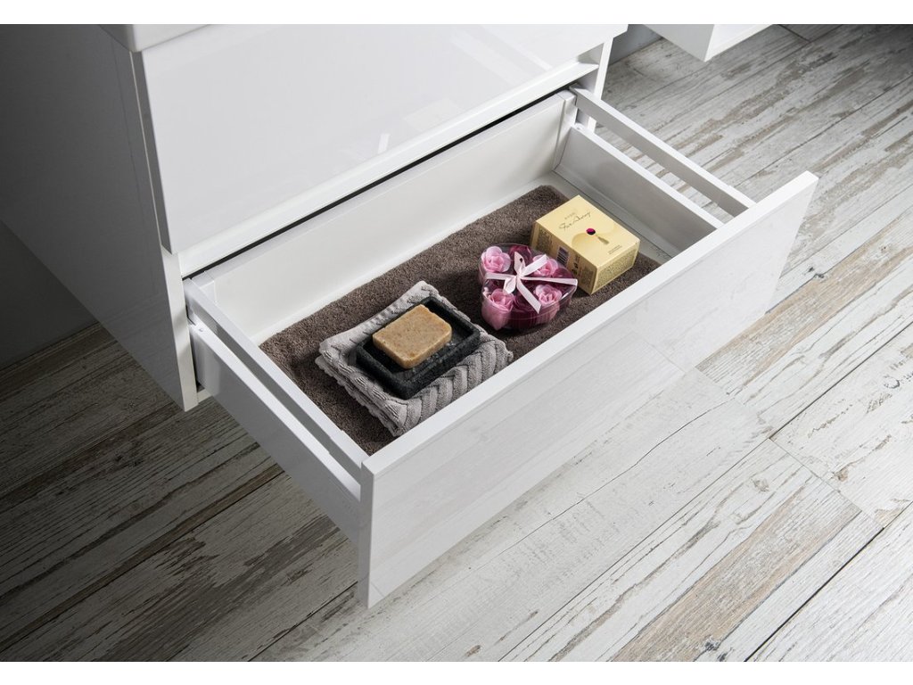 Nábytek je vybaven pojezdy zásuvek s pomalým dojezdem a systémem automatického dovření zásuvek. Již žádné hlučné dovírání.