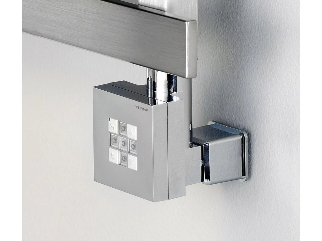 KTX s krytem pro přímé napojení do zdi - elektrická topná tyč s designovým termostatem. Hranatý design vhodný pro všechny typy radiátorů. Symetrické provedení umožňuje instalaci na levou i pravou stranu radiátoru.