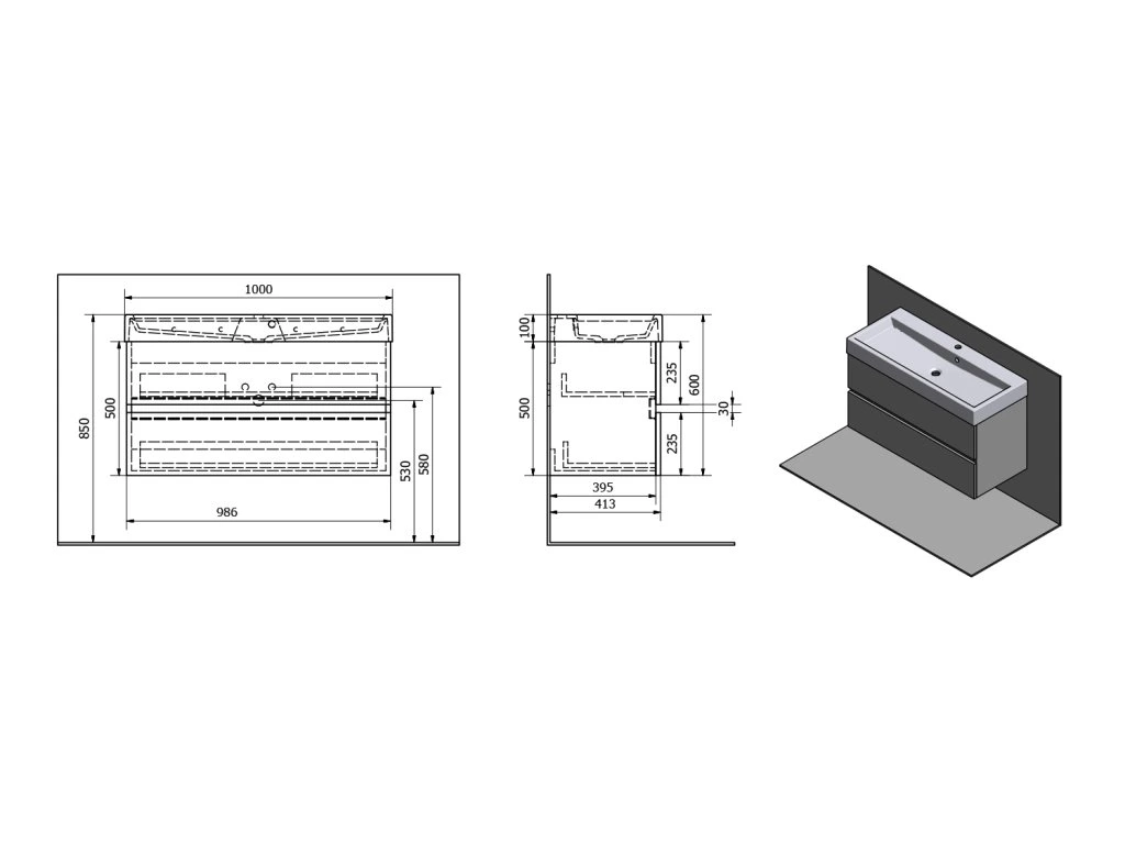 Sapho LARGO umyvadlová skříňka 99x50x41cm, bílá LA101
