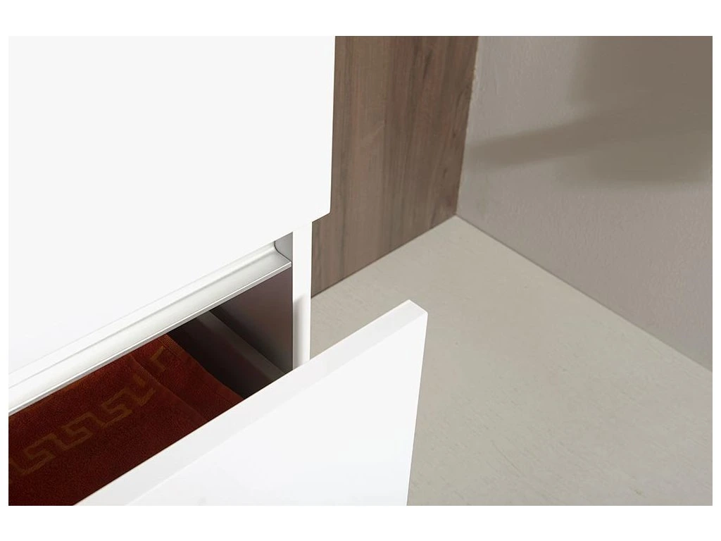 Nábytek je vybaven pojezdy zásuvek s pomalým dojezdem a systémem automatického dovření zásuvek. Již žádné hlučné dovírání.
