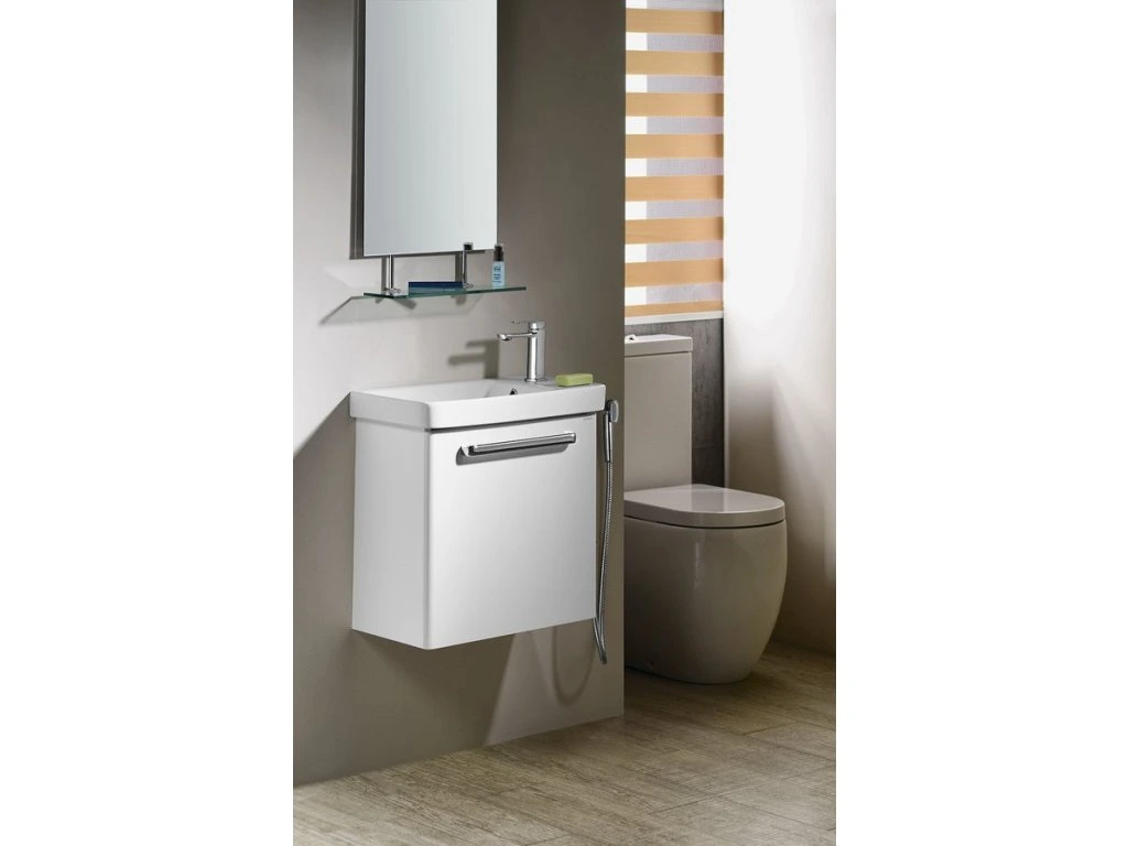 Malé rozměry koupelnového nábytku LATUS VIII umožňují instalaci především do stísněných prostor, obzvláště na toalety. Skříňka se přímo nabízí k uskladnění čistících a hygienických prostředků nebo toaletního papíru. Umyvadlo z keramiky vytváří se skříňkou kompaktní celek. V nabídce je několik barevných dekorů skříněk pro větší kompatibilitu.