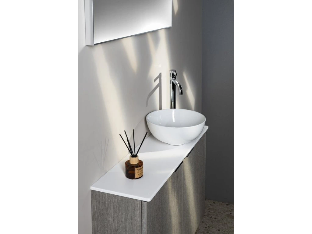 Malé rozměry koupelnového nábytku LATUS X umožňují instalaci především do stísněných prostor, obzvláště na toalety. Skříňka se přímo nabízí k uskladnění čistících a hygienických prostředků nebo toaletního papíru. Umyvadlo z litého mramoru nebo betonu vytváří se skříňkou kompaktní celek. Navíc je možná i varianta desky a umyvadla na desku. V nabídce je jak několik tvarů umyvadel, tak barevných dekorů skříněk pro větší kompatibilitu.