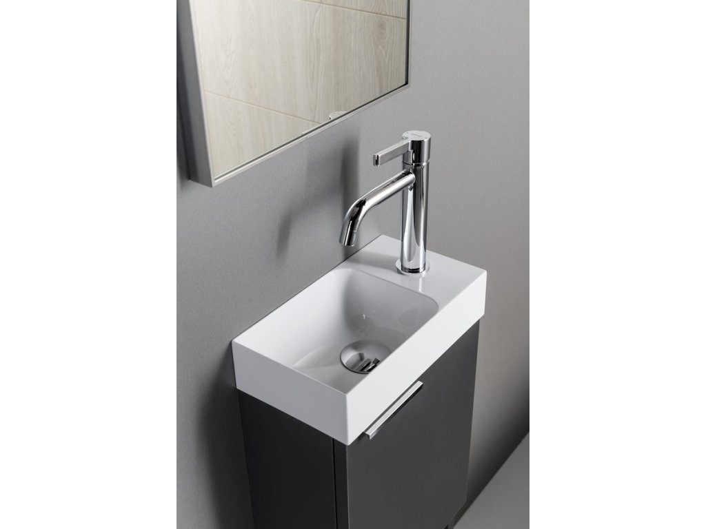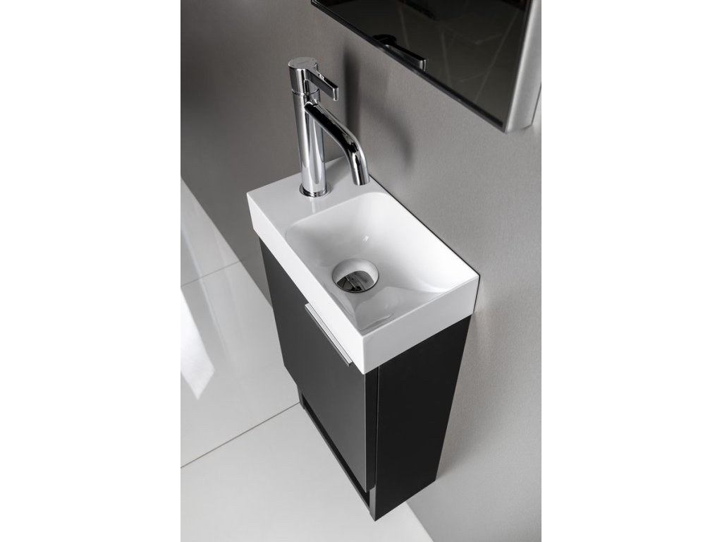 Malé rozměry koupelnového nábytku LATUS umožňují instalaci především do stísněných prostor, obzvláště na toalety. Skříňka se přímo nabízí k uskladnění čistících a hygienických prostředků nebo toaletního papíru. Umyvadlo z litého mramoru nebo keramiky vytváří se skříňkou kompaktní celek. V nabídce je jak několik tvarů umyvadel, tak barevných dekorů skříněk pro větší kompatibilitu.