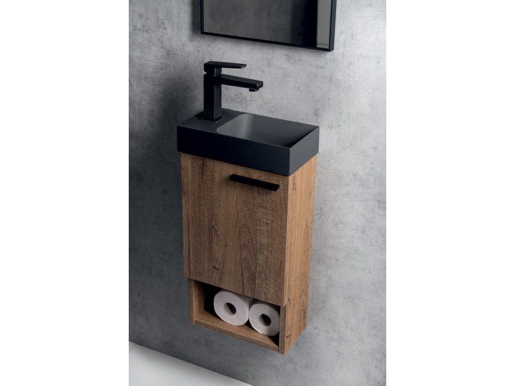 Malé rozměry koupelnového nábytku LATUS XI umožňují instalaci především do stísněných prostor, obzvláště na toalety. Skříňka se přímo nabízí k uskladnění čistících a hygienických prostředků nebo toaletního papíru. Umyvadlo z litého mramoru nebo betonu vytváří se skříňkou kompaktní celek. V nabídce je jak několik tvarů umyvadel, tak barevných dekorů skříněk pro větší kompatibilitu.