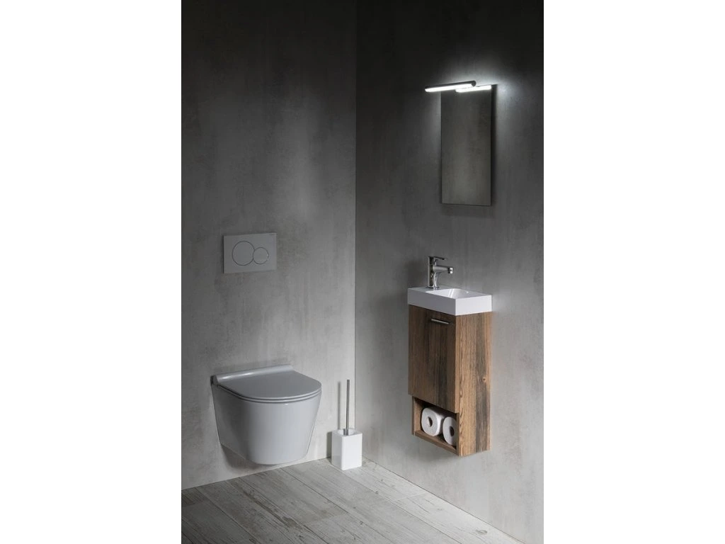 Malé rozměry koupelnového nábytku LATUS XI umožňují instalaci především do stísněných prostor, obzvláště na toalety. Skříňka se přímo nabízí k uskladnění čistících a hygienických prostředků nebo toaletního papíru. Umyvadlo z litého mramoru nebo betonu vytváří se skříňkou kompaktní celek. V nabídce je jak několik tvarů umyvadel, tak barevných dekorů skříněk pro větší kompatibilitu.