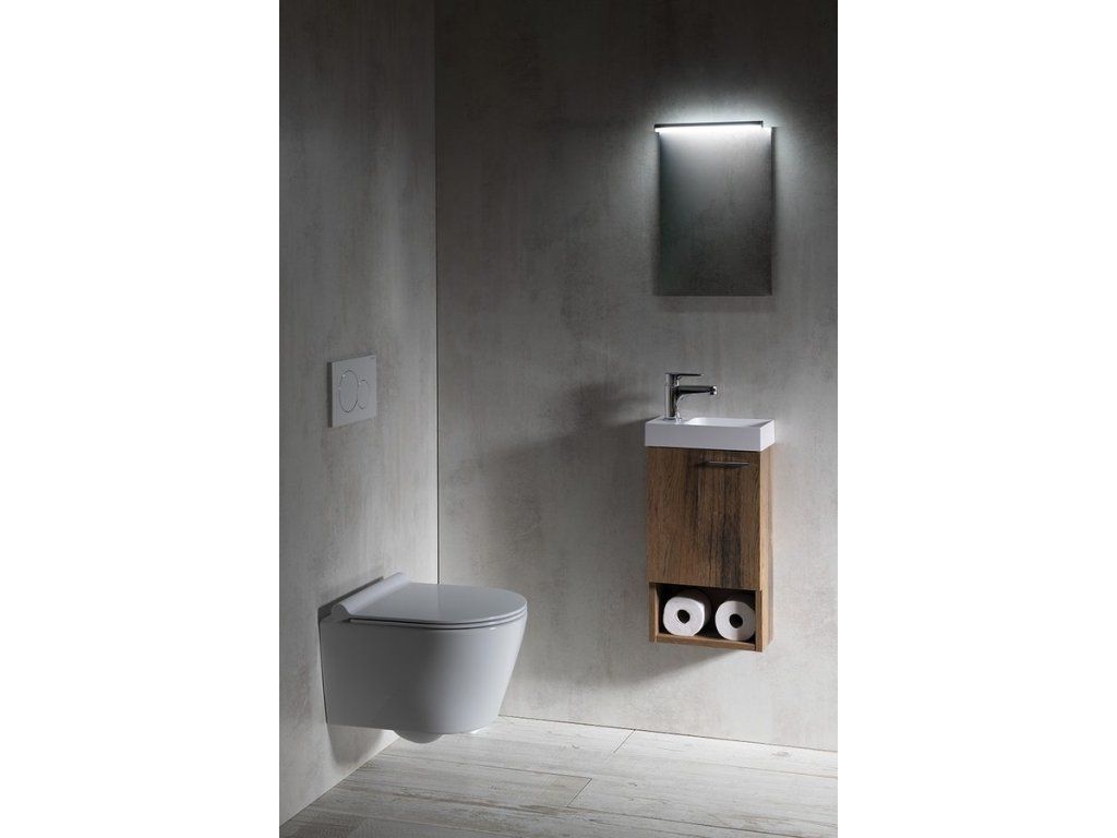 Malé rozměry koupelnového nábytku LATUS XI umožňují instalaci především do stísněných prostor, obzvláště na toalety. Skříňka se přímo nabízí k uskladnění čistících a hygienických prostředků nebo toaletního papíru. Umyvadlo z litého mramoru nebo betonu vytváří se skříňkou kompaktní celek. V nabídce je jak několik tvarů umyvadel, tak barevných dekorů skříněk pro větší kompatibilitu.