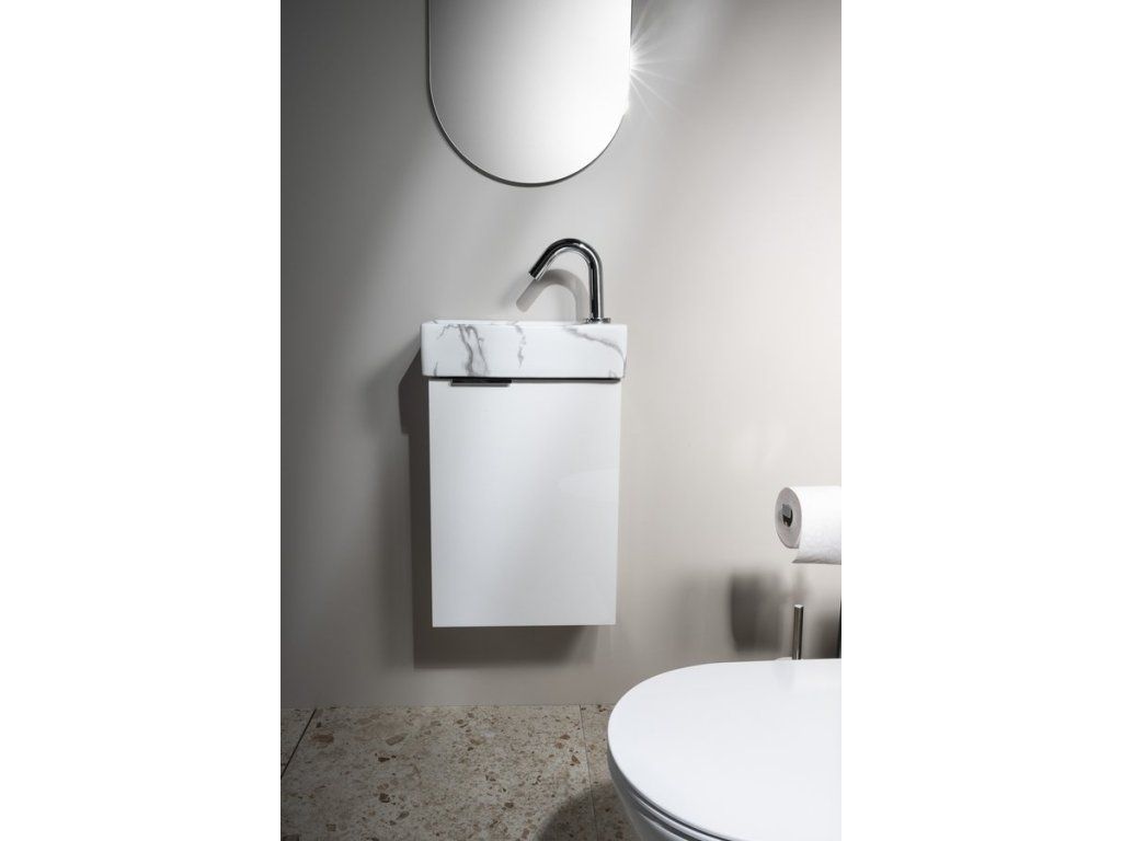 Malé rozměry koupelnového nábytku LATUS XII umožňují instalaci především do stísněných prostor, obzvláště na toalety. Skříňka se přímo nabízí k uskladnění čistících a hygienických prostředků nebo toaletního papíru. Umyvadlo z keramiky vytváří se skříňkou kompaktní celek. V nabídce je jak několik barev umyvadla, tak barevných dekorů skříněk pro větší kompatibilitu.
