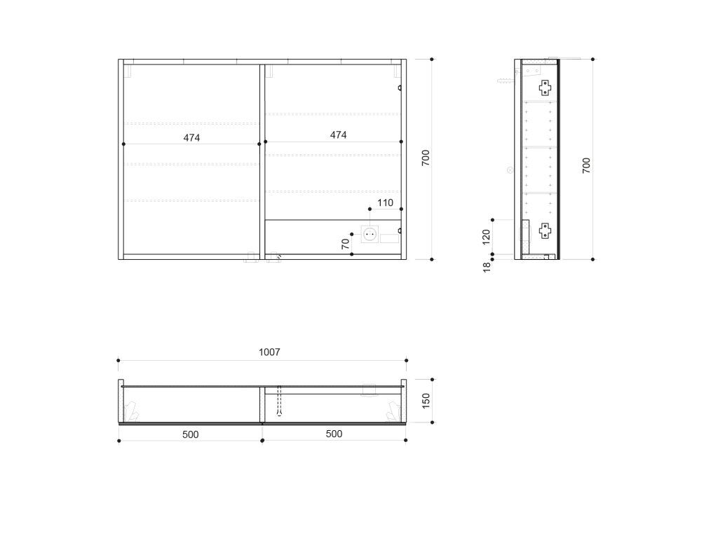 | Výbava: | Osvětlení;Elektrická zásuvka;Oboustranná zrcadlová dvířka;Zpomalovací panty |