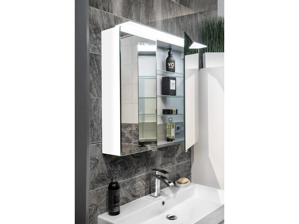 Galerky LINEX – skleněné nastavitelné police poskytují dostatek místa pro uskladnění kosmetiky, hygienických potřeb i holicího strojku. Navíc i při otevření galerky můžete používat zrcadlo díky oboustranným zrcadlovým dvířkům. Dovírání dvířek s dotahem zajišťuje značkové kování GRASS. Výkonné LED osvětlení v liště po celé šířce galerky zajistí dostatek osvětlení a ovládá se pomocí externího vypínače. Pro větší komfort ovládání osvětlení lze dokoupit bezdotykovou senzorovou sadu. Samozřejmostí je elektrická zásuvka a designová úchytka dvířek. K vybraným rozměrům nabízíme také závěsnou skleněnou poličku.