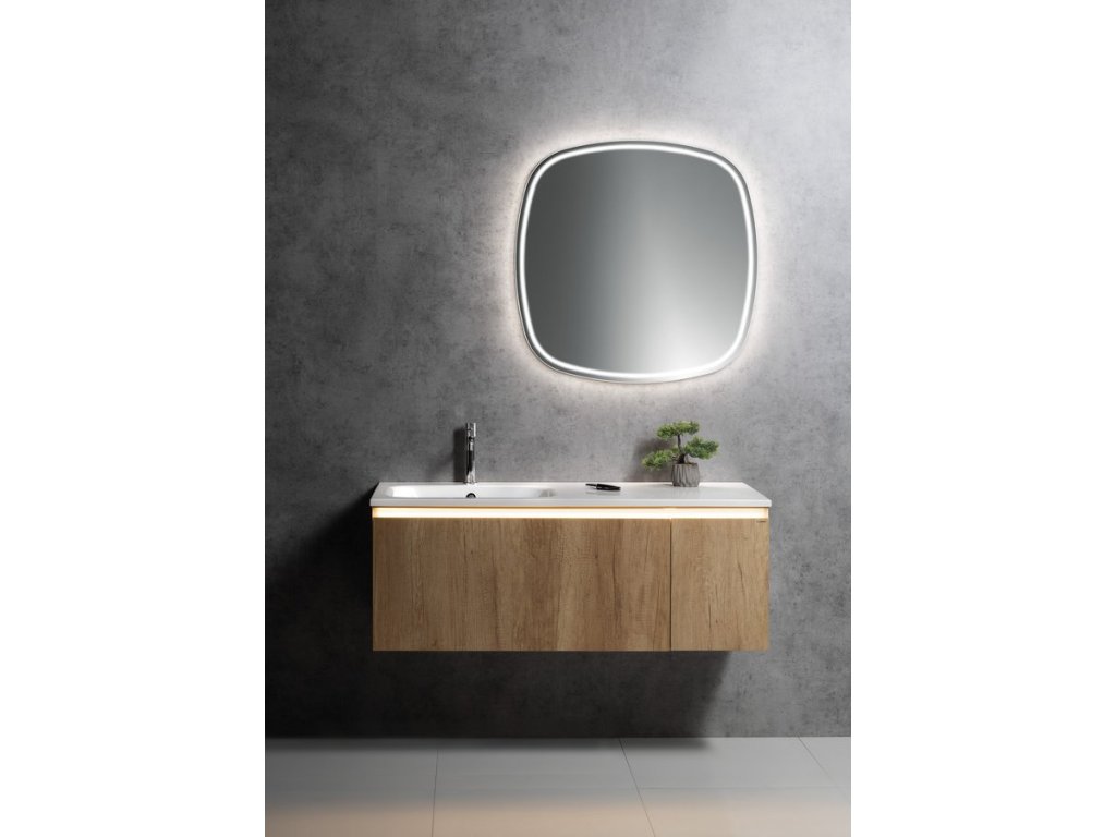 Uvnitř skříňky je nad zásuvkou praktická police na drobnosti každodenní potřeby. Pod hranu umyvadla lze instalovat tlumené LED osvětlení, které pro jeho nízkou spotřebu (1W) není nutné vypínat.