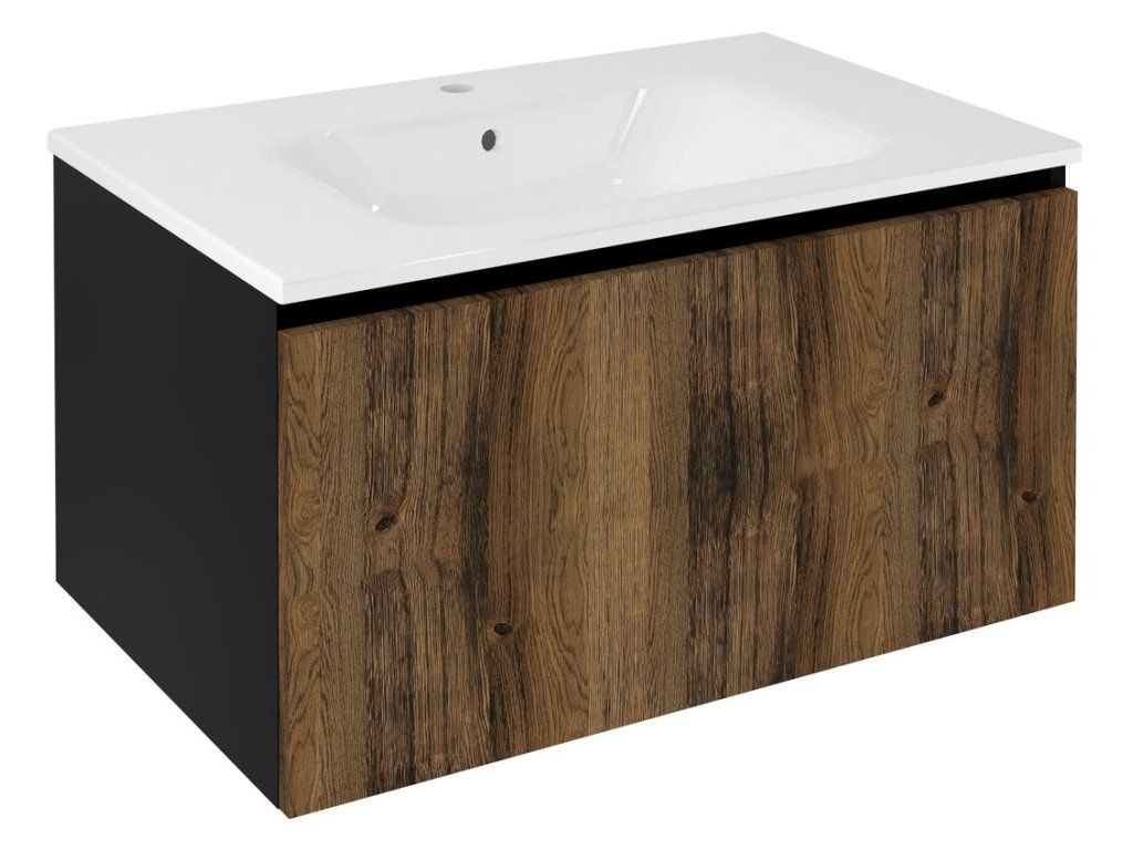Sapho LOREA umyvadlová skříňka 80x44x51,2cm, 1x zásuvka, dub collingwood/černá mat LE080-1935