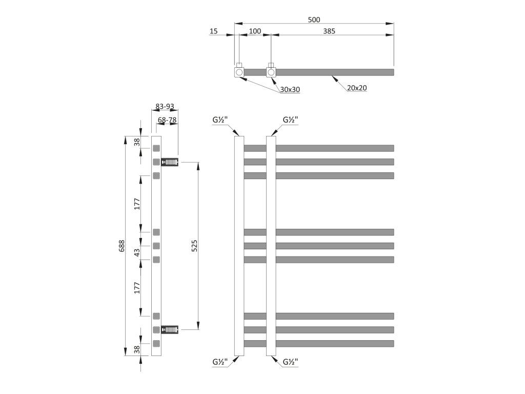 Pokud je otopné těleso vytápěno pouze elektricky, tzn. pouze za pomoci topné tyče, je nutné zakoupit ½" záslepku k radiátorům. Ta slouží k zaslepení druhého otvoru v tělese, který by byl jinak použit pro připojovací ventil ústředního vytápění.