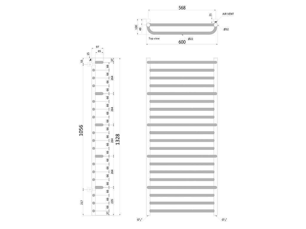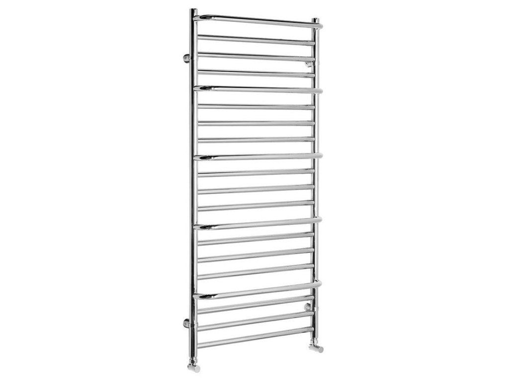 Klasické těleso vyrobené z pochromovaných ocelových trubek, doplněné praktickými madly na sušení ručníků.