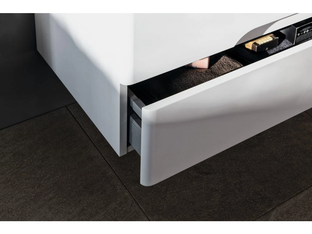 Nábytek je vybaven pojezdy zásuvek s pomalým dojezdem a systémem automatického dovření zásuvek. Již žádné hlučné dovírání.