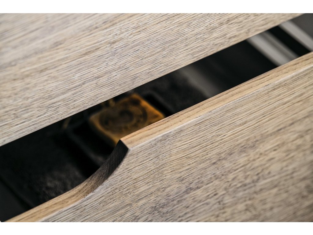 Série MEDIENA je kombinací bílé matné barvy a zásuvek z masivního dřeva, které svým zaoblením kopírují tvar keramických umyvadel SAND od italského výrobce GSI. Zásuvky s netradičním tvarem výřezu pro otvírání jsou vybaveny výsuvy BLUM s funkcí tlumení BLUMOTION s doživotní zárukou. Skříňky nabízíme buď celé v bílém matném provedení nebo v kombinaci korpus matná bílá a čela zásuvek ve 2 dekorech dubového dřeva (voskový olej dub natural a dub graphite). Šířky skříněk jsou 60, 80, 100 a 120 cm. V nabídce jsou též 2 typy doplňkových policových skříněk. Skříňku s prádelním košem získáte jednoduchým vyjmutím spodní police u doplňkové skříňky šíře 35 cm a instalací látkového prádelního koše na suchý zip.