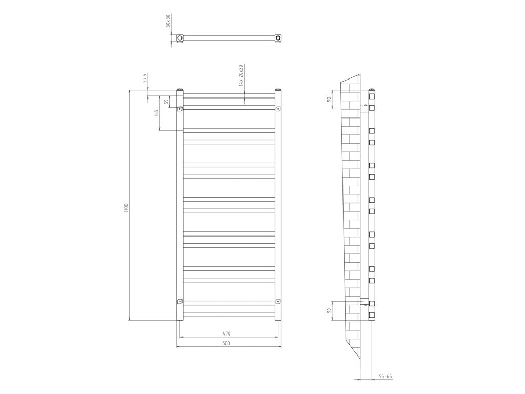 Sapho METRO DOS otopné těleso 500x1100 mm, černá mat IR432TB