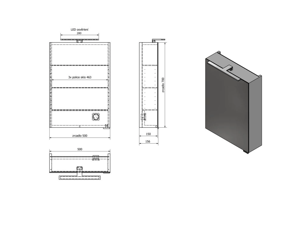 | Výbava: | Osvětlení;Elektrická zásuvka;Oboustranná zrcadlová dvířka;Zpomalovací panty |