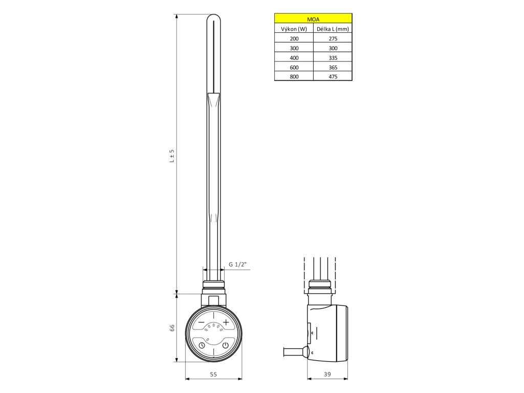 MOA je elektrická topná tyč s designovým termostatem. Kulatý design vhodný pro všechny typy radiátorů. Symetrické provedení umožňuje instalaci na levou i pravou stranu radiátoru.