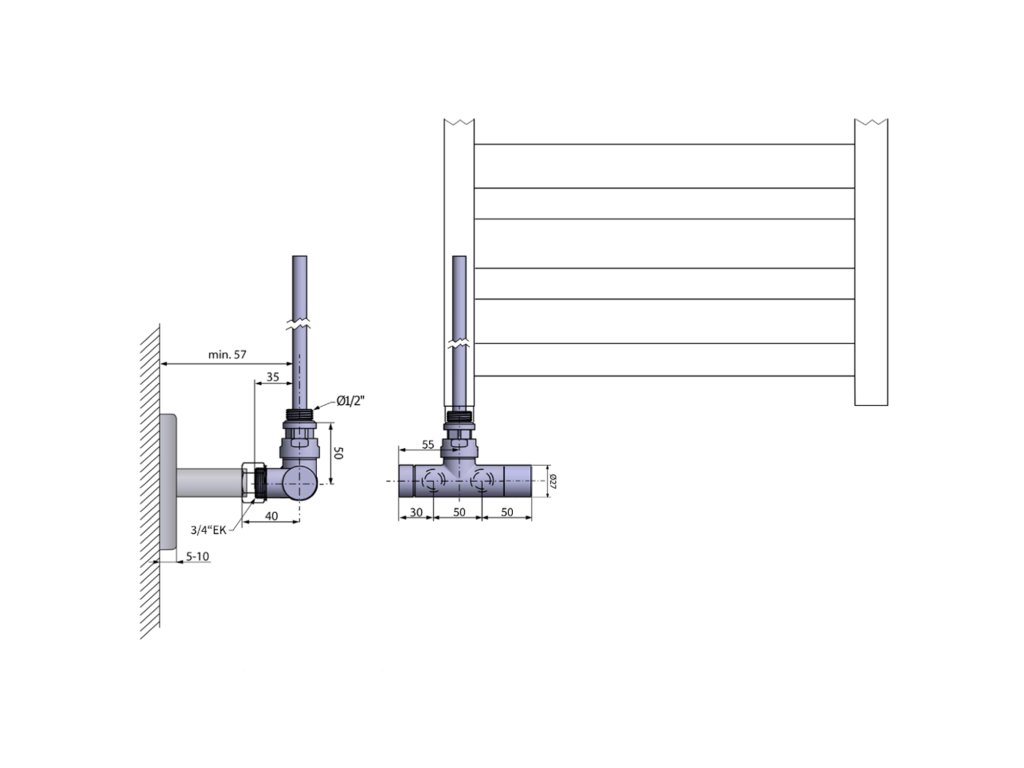 Kombinované připojení umožňuje ohřívat těleso jak centrálním systémem vytápění, tak využít pro samostatný ohřev elektrickou topnou tyč mimo topnou sezonu. Topnou tyč doporučujeme se stejným nebo podobným výkonem dle specifikace daného topného tělesa.