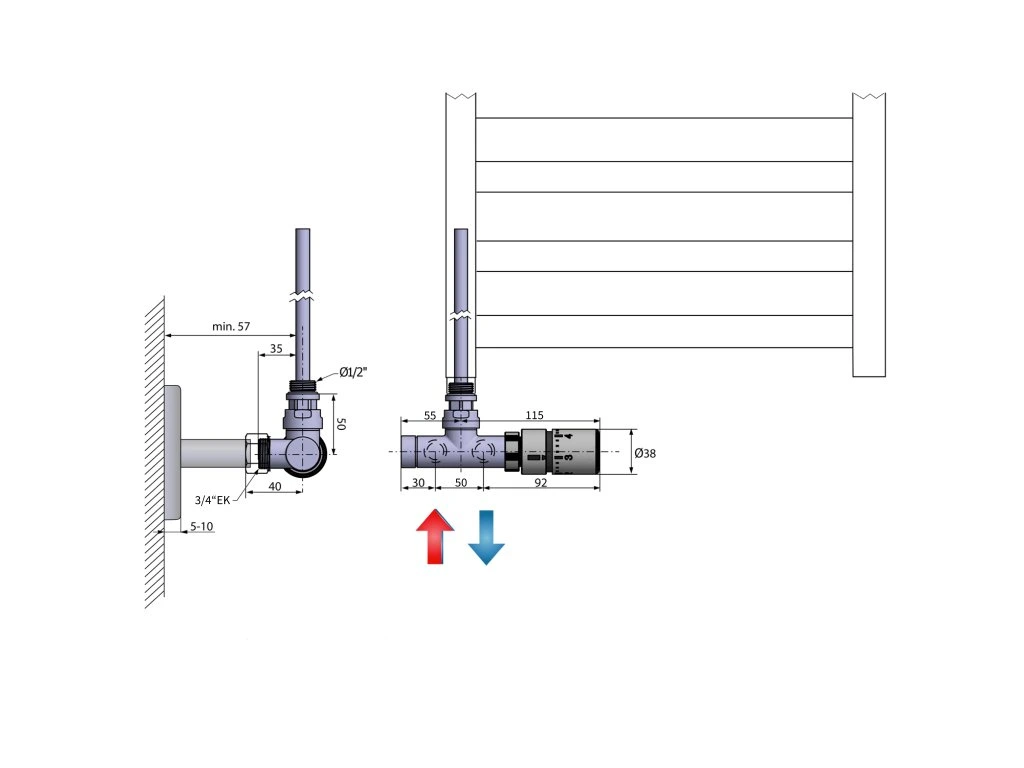 Kombinované připojení umožňuje ohřívat těleso jak centrálním systémem vytápění, tak využít pro samostatný ohřev elektrickou topnou tyč mimo topnou sezonu. Topnou tyč doporučujeme se stejným nebo podobným výkonem dle specifikace daného topného tělesa.