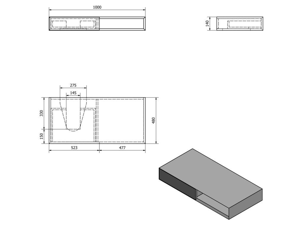 • Umyvadlové skříňky jsou bez otvorů pro sifon a baterii v pracovní desce, nutno vyvrtat