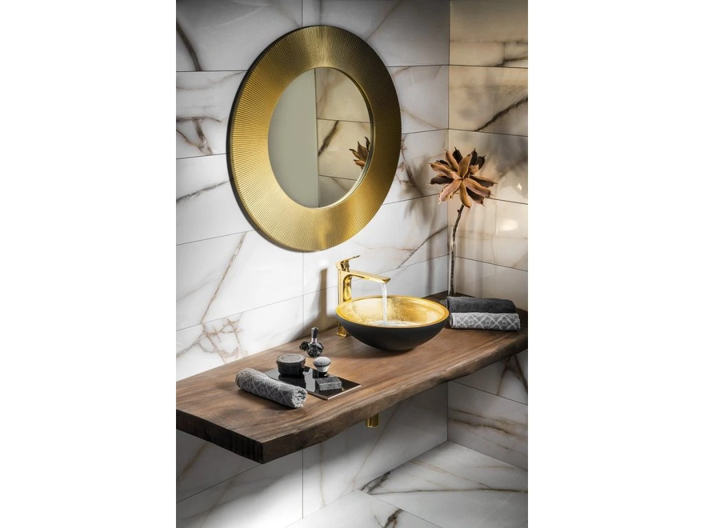 Sapho MURANO BLACK-GOLD skleněné umyvadlo na desku, průměr 40cm, černá/zlatá AL5318-77