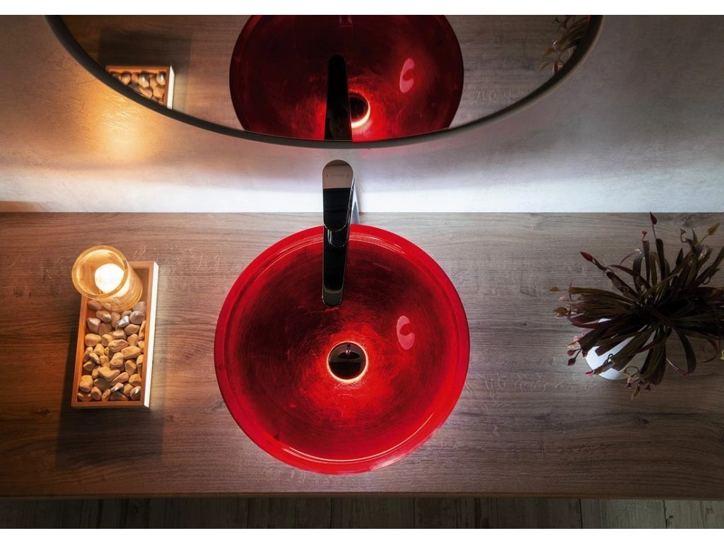 Díky flexibilitě výrobních procesů, vášni a zkušenostem sklářských mistrů tak máte možnost obohatit svou koupelnu o jedinečný prvek. Skleněné umyvadlo v barevných provedeních se sofistikovaným povrchem a tvary vytvoří z koupelny emocionálně pozitivní prostor.