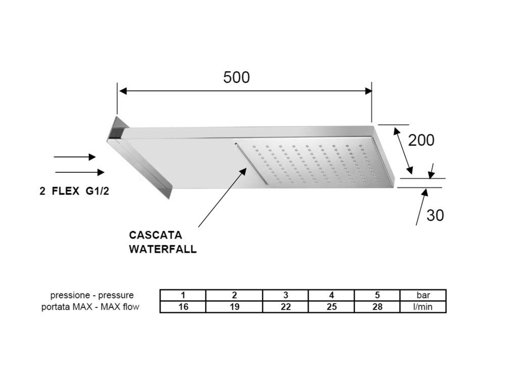 Sapho Nástěnná hlavová sprcha s kaskádou, 500x200mm, nerez lesk DC562