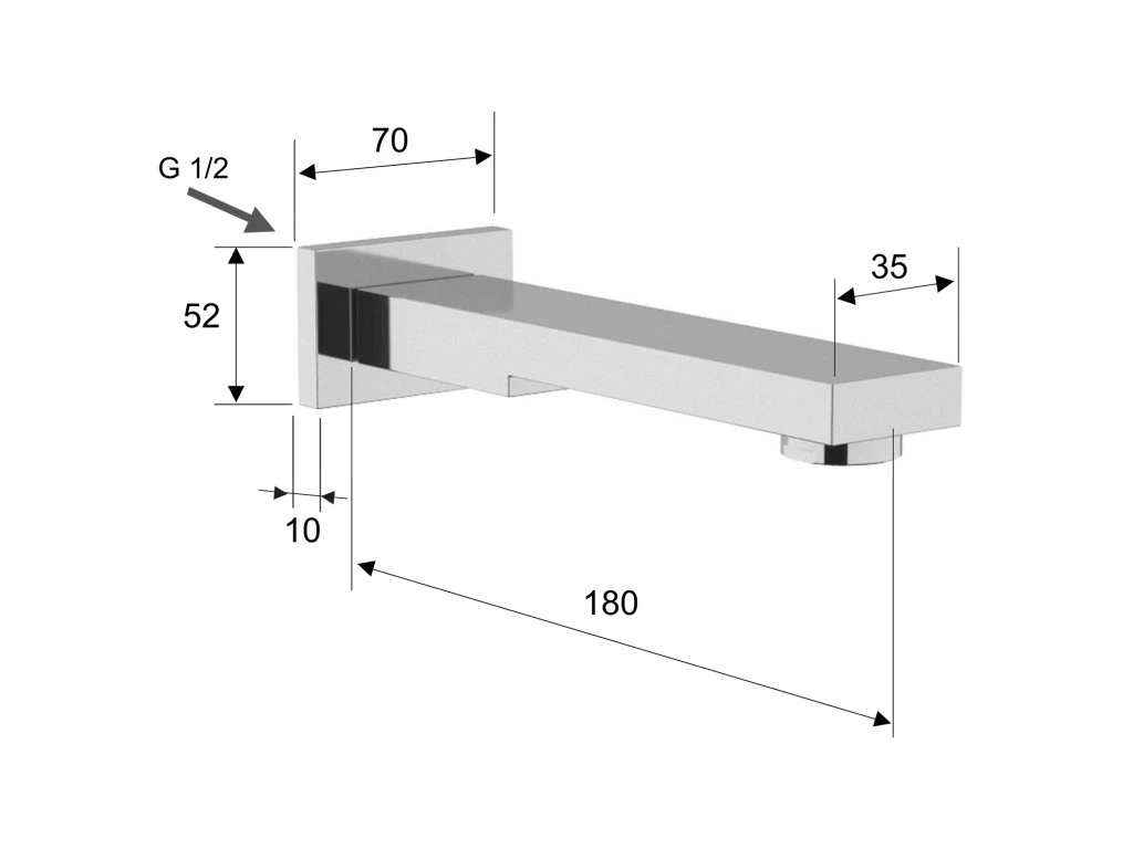 Sapho Nástěnná výtoková hubice, hranatá, 180mm, zlato BO417