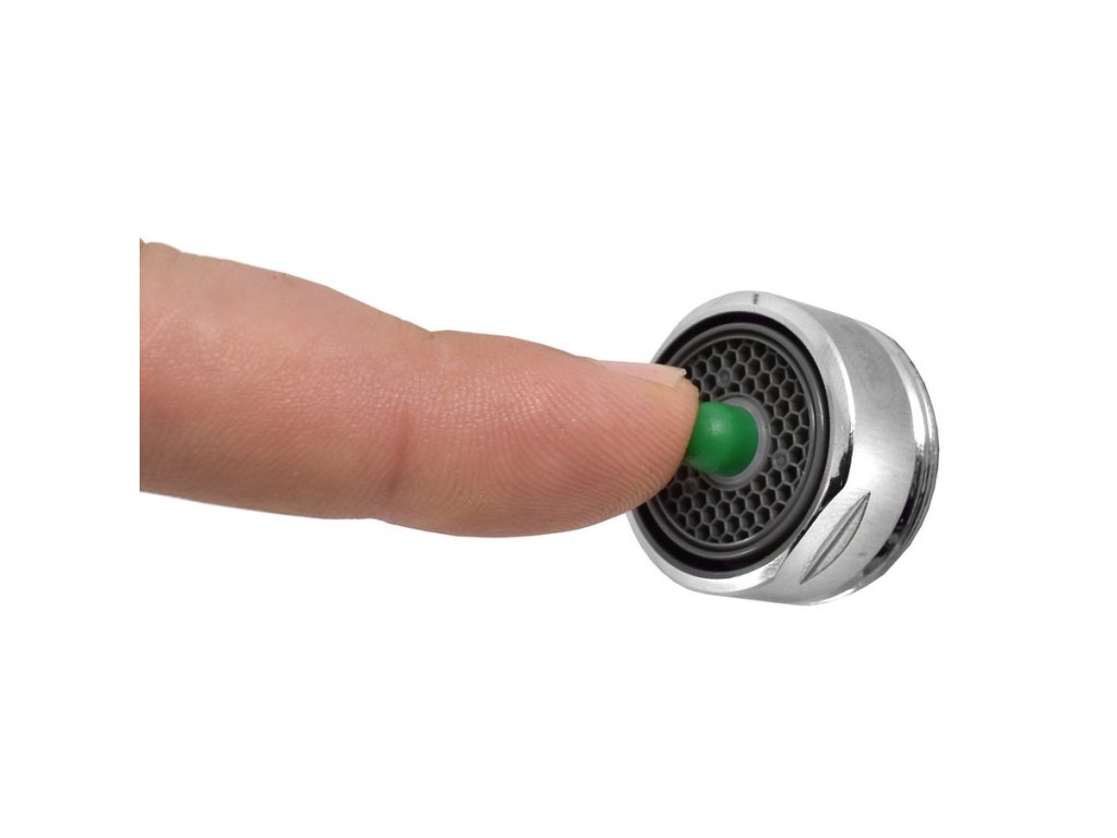 Nový typ perlátoru, který vám uspoří 50 % vody. Perlátor má charakteristický zelený knoflík, kterým přepínáte mezi dvěma průtoky vody. V úsporném režimu proteče kohoutkem o polovinu méně vody bez ztráty komfortu. Doporučujeme zapnout úsporný režim při mytí nádobí pod tekoucí vodou, mytí rukou nebo třeba čištění zubů. Pokud potřebujete napustit umyvadlo či dřez, stačí stisknout zelený knoflík a získáte plný průtok.