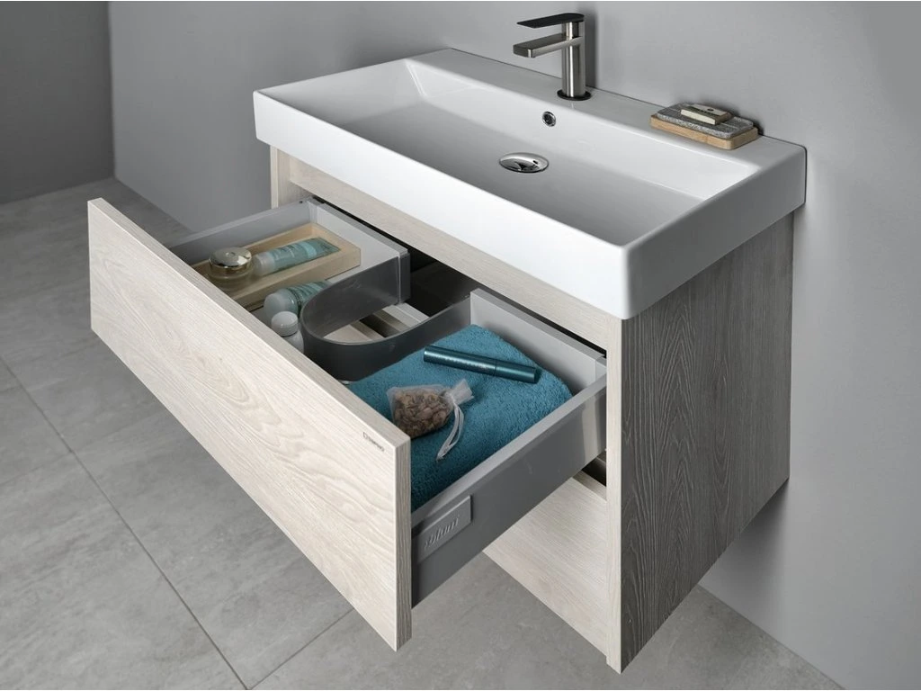 Série NIRONA má v kombinaci s keramickými umyvadly KARE jednoduché, čisté a rovné tvary. Zapuštěné zásuvky v korpusu jsou bezúchytkové, vybavené výsuvy BLUM s funkcí tlumení BLUMOTION s doživotní zárukou.