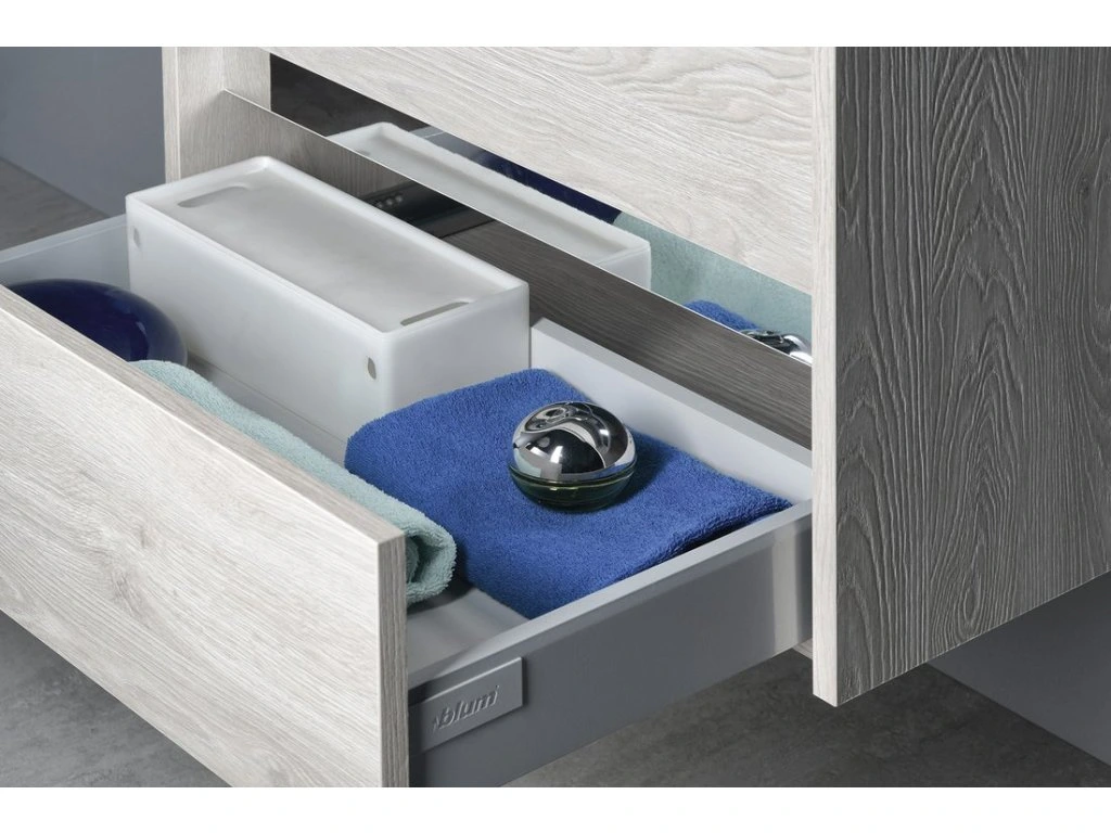 Nábytek je vybaven pojezdy zásuvek s pomalým dojezdem a systémem automatického dovření zásuvek. Již žádné hlučné dovírání.