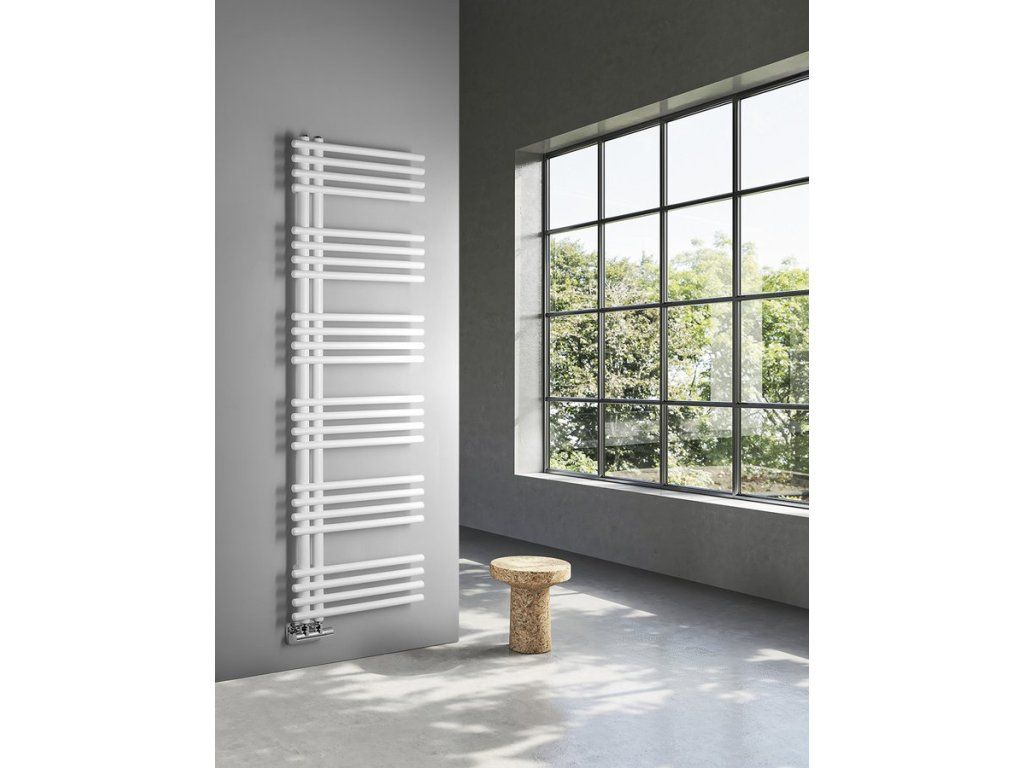 Klasické trubky s kruhovým profilem sestavené v designový radiátor, který lze díky středovému připojení s roztečí 50 mm kombinovat s designovými ventily z naší nabídky.