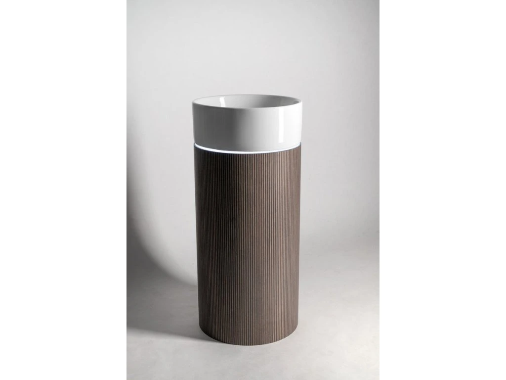Sapho OASIS keramické umyvadlo volně stojící ø 40x89cm, bílá/dub cardamom AS408-K2776