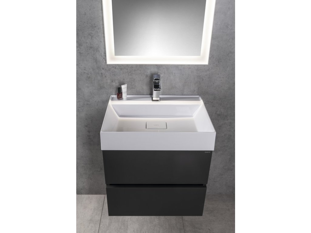 • Při instalaci keramického umyvadla KARE je nutné použít distanční podložky (součástí balení skříňky) a sifon URBINO s Click Clack výpustí (k dokoupení).