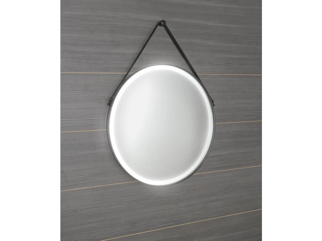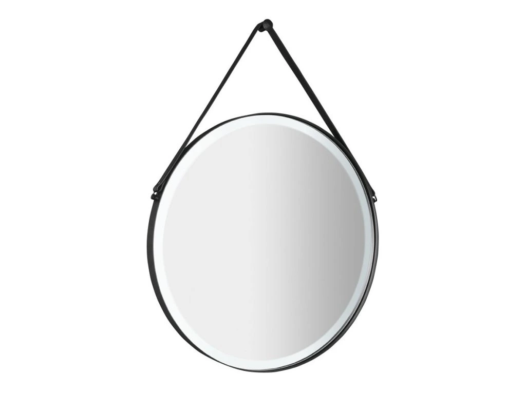 Sapho ORBITER kulaté zrcadlo s LED osvětlením ø 60cm, kožený pásek, černá mat ORL060