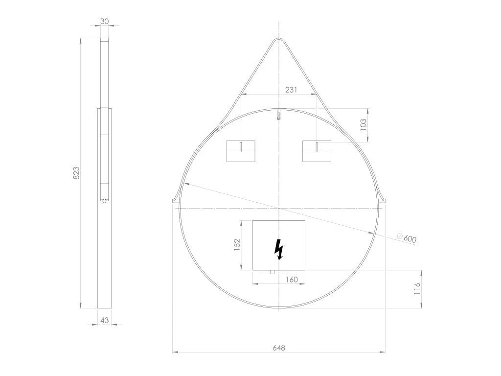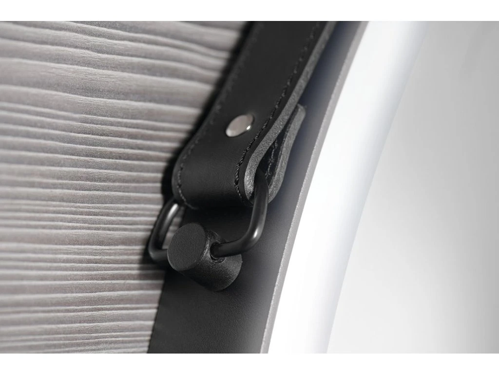 Kulaté zrcadlo s koženým páskem
